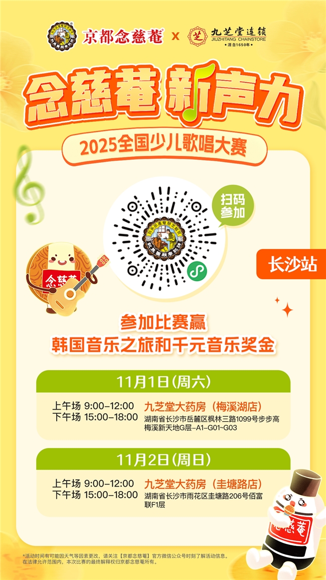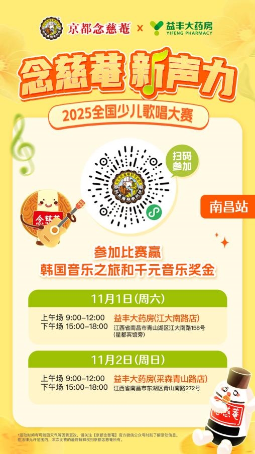 “念慈菴·新声力”少儿歌唱大赛海选将在11月1日至2日来到南昌和长沙,让我们相约南昌、长沙,继续见证童声绽放的动人时刻,共同守护每个孩子的音乐梦想!